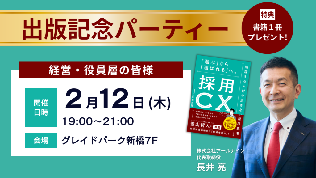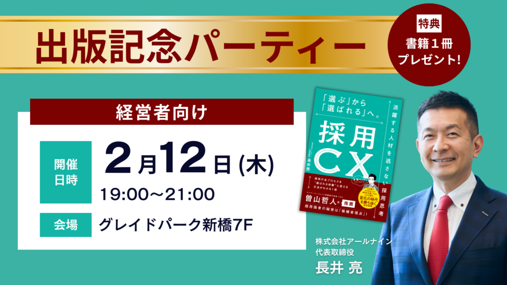 出版を記念し、経営者の皆さま向けの出版記念パーティー(採用ミニセミナー付き) を開催いたします。