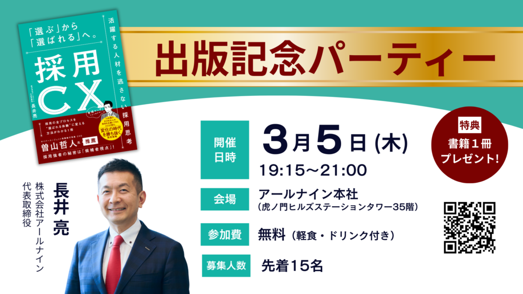 出版を記念し、人事・人材業界の方向けの出版記念パーティー(採用ミニセミナー付き) を開催いたします。